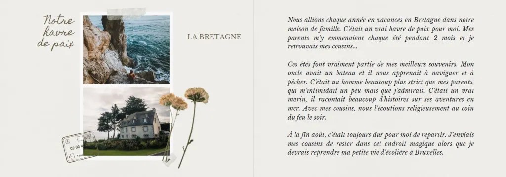 – la mise en page du livre photo, qui mettra en regard les photos et les anecdotes qui s’y rapportent