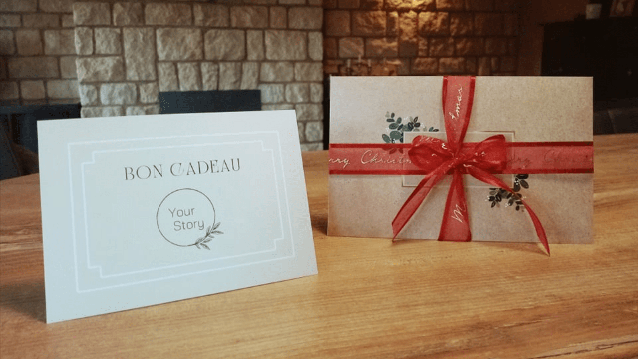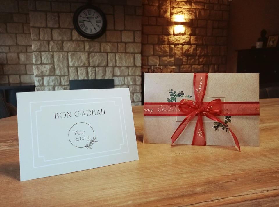 Si vous offrez un cadeau Your Story, vous recevrez par la poste un bon cadeau joliment emballé ! À l’intérieur, une carte explicative pour donner un avant-goût à votre proche de l’expérience qu’il va vivre…